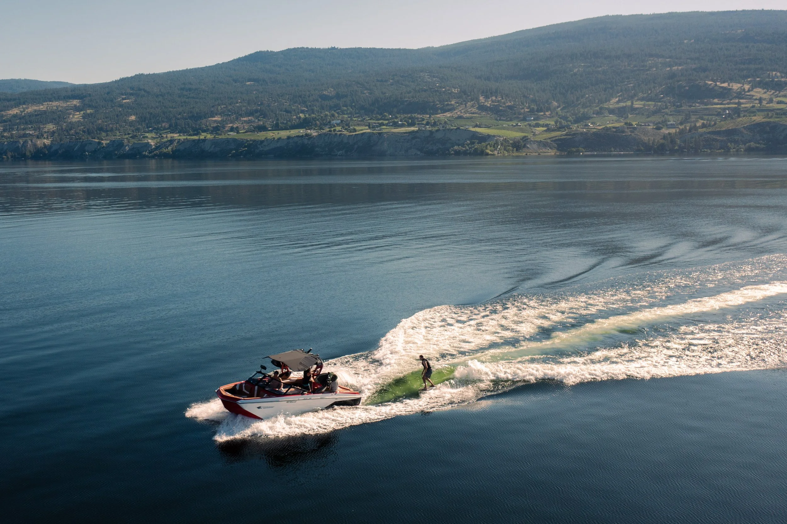 Whether you want to wakeboard, waterski, tube, or wakesurf, Okanagan Lake has the space and conditions for everything. The bigger size means more room to spread out and find your own perfect spot away from other boats.